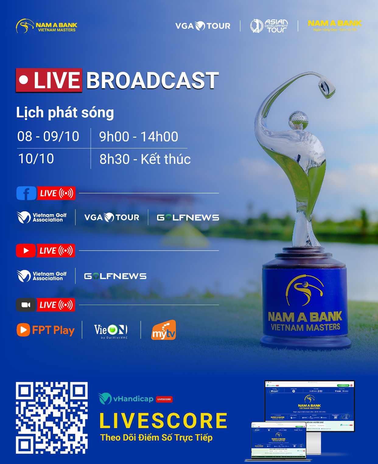 Nam A Bank Vietnam Masters 2025 sẽ được phát sóng trực tiếp trên: