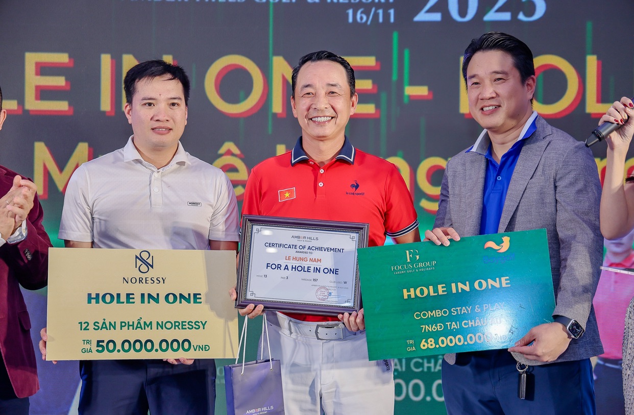 Giải đấu “Green Reborn – Amber Hills Championship 2025” đã chứng kiến khoảnh khắc ấn tượng khi golfer Lê Hùng Nam lập kỳ tích HIO đầu tiên trong lịch sử giải thường niên của sân Amber Hills tại hố #13. Đây là hố ngắn nhất trên bản đồ sân nhưng có địa hình dốc kèm nhiều bẫy xung quanh. Đáng chú ý, tay gậy đến từ Hà Nội còn xuất sắc chinh phục chiếc cúp danh giá nhất – “Best Gross” với tổng 78 gậy.