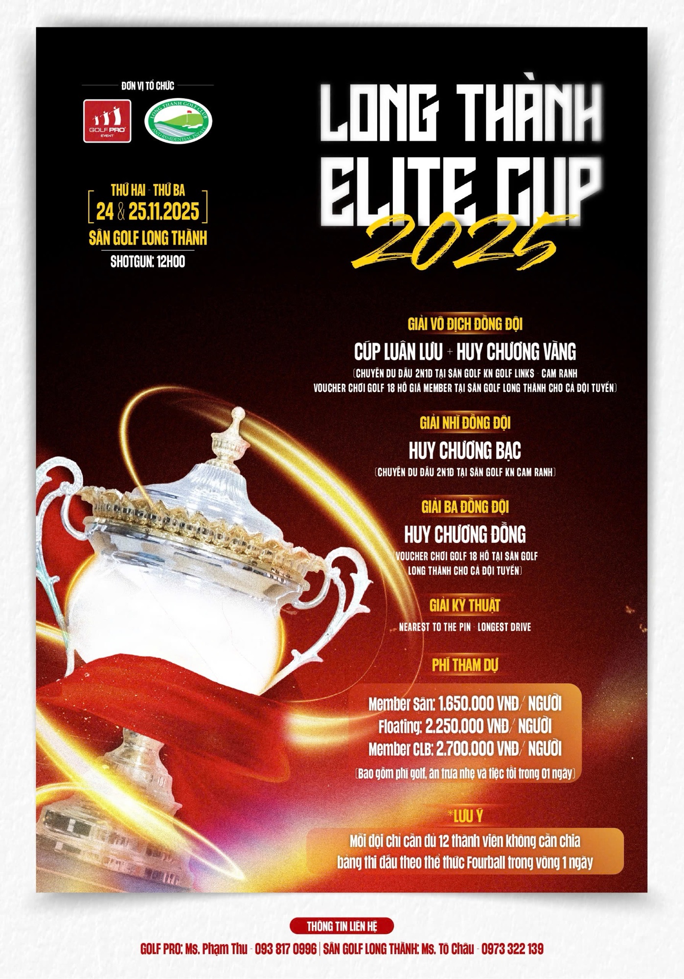 Vào ngày 24 và 25/11 tới, sân golf Long Thành sẽ chính thức tổ chức giải golf đồng đội đối kháng “LONG THÀNH ELITE CUP 2025”