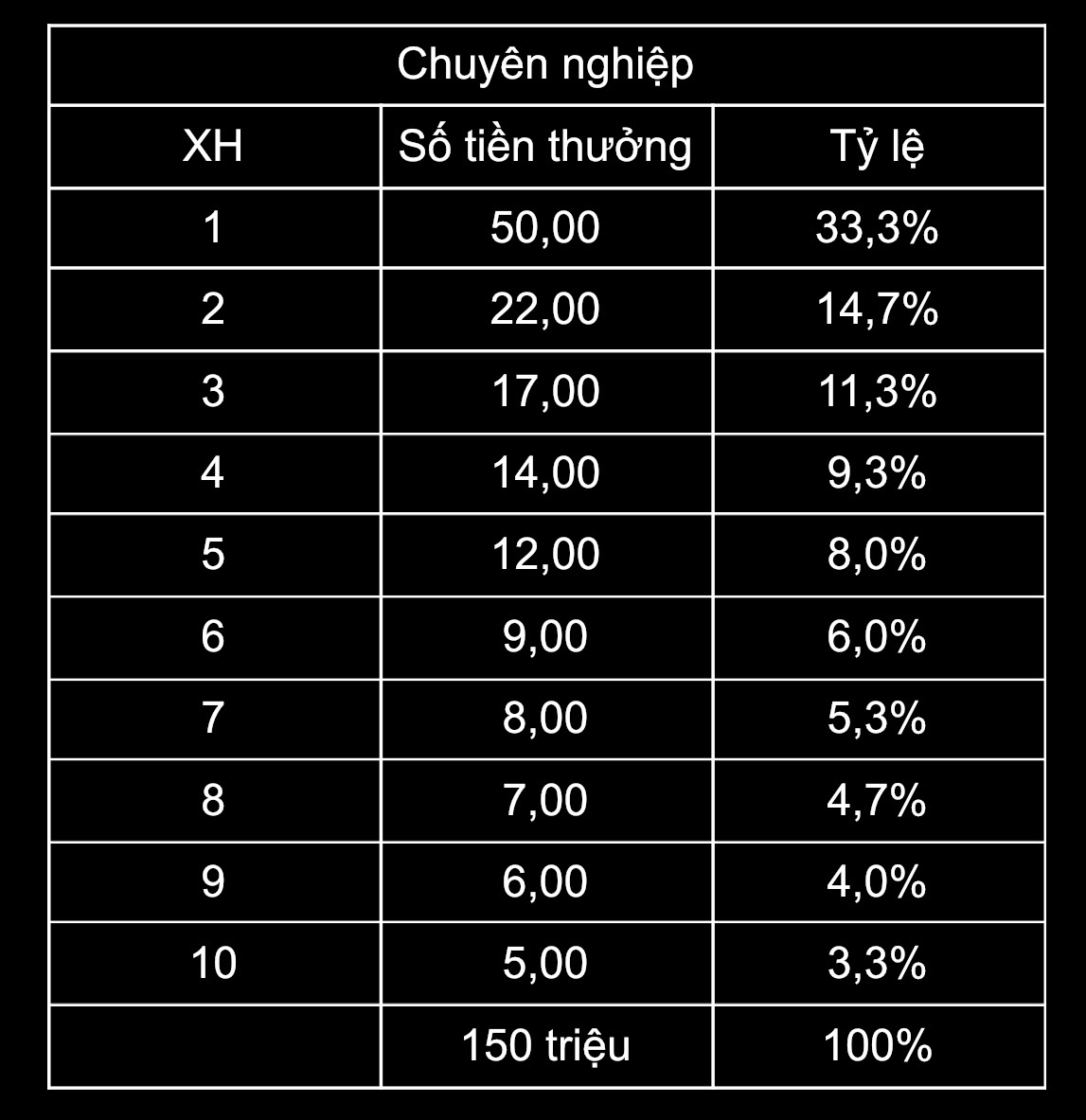 Tổng thưởng: 150 triệu Top 10 Pro, 50 triệu Top 5 Am.