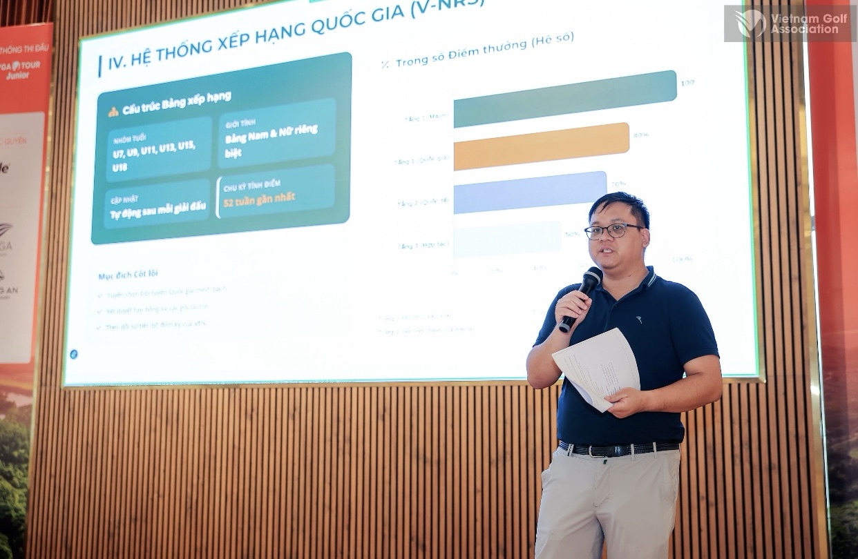 • Hệ thống Xếp hạng (VGA Ranking) & Sự kết hợp với WAGR: Lần đầu tiên, một Bảng xếp hạng quốc gia (V-NRS – Vietnam National Ranking System) duy nhất, minh bạch sẽ được áp dụng. Hệ thống này không chỉ là thước đo năng lực VĐV trong nước mà còn được thiết kế để kết nối và hội nhập với Bảng xếp hạng Golf Nghiệp dư Thế giới (WAGR), tạo ra một “chân đế” vững chắc trong nước và một “đầu tàu” sắc bén vươn ra quốc tế.
