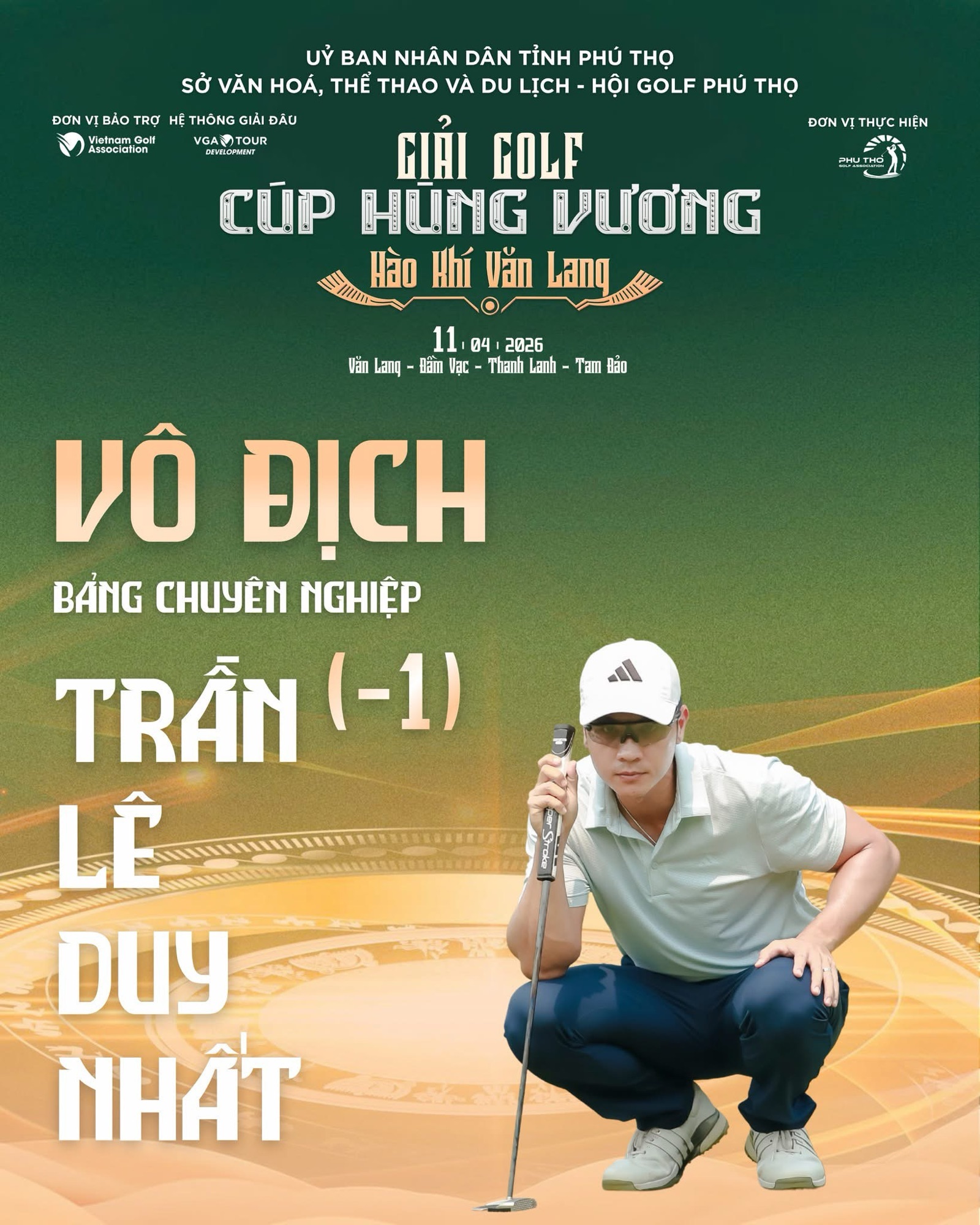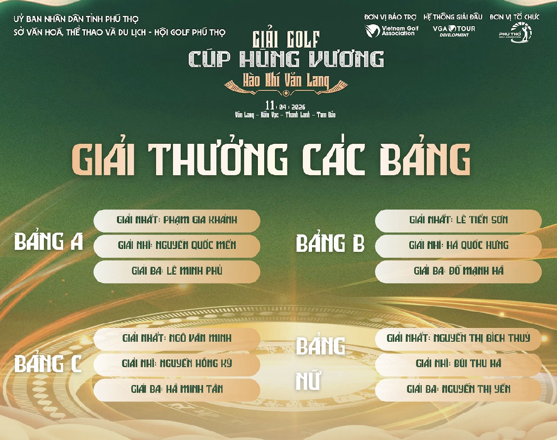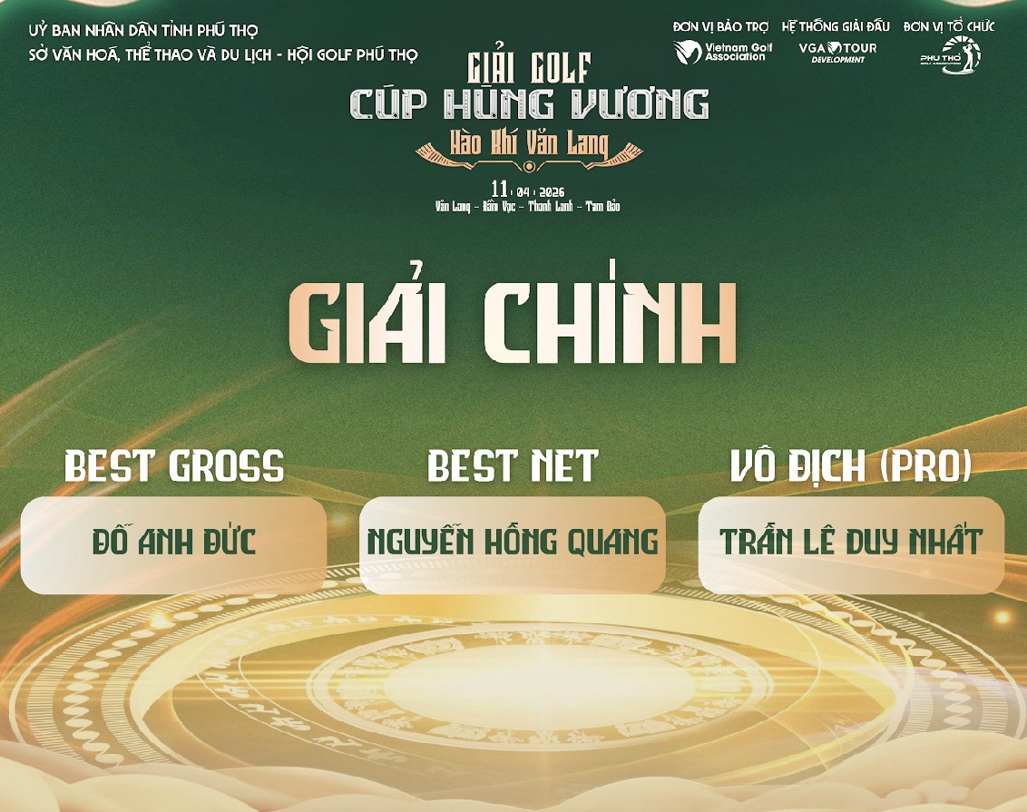 Giải Golf Cúp Hùng Vương – “Hào Khí Văn Lang” 2026 đã khép lại thành công ngày 11/4 tại 4 sân golf của tỉnh Phú Thọ. Giải đấu đã xác định các golfer xuất sắc tử 600 tham dự, ở cả 2 bảng chuyên nghiệp và nghiệp dư.